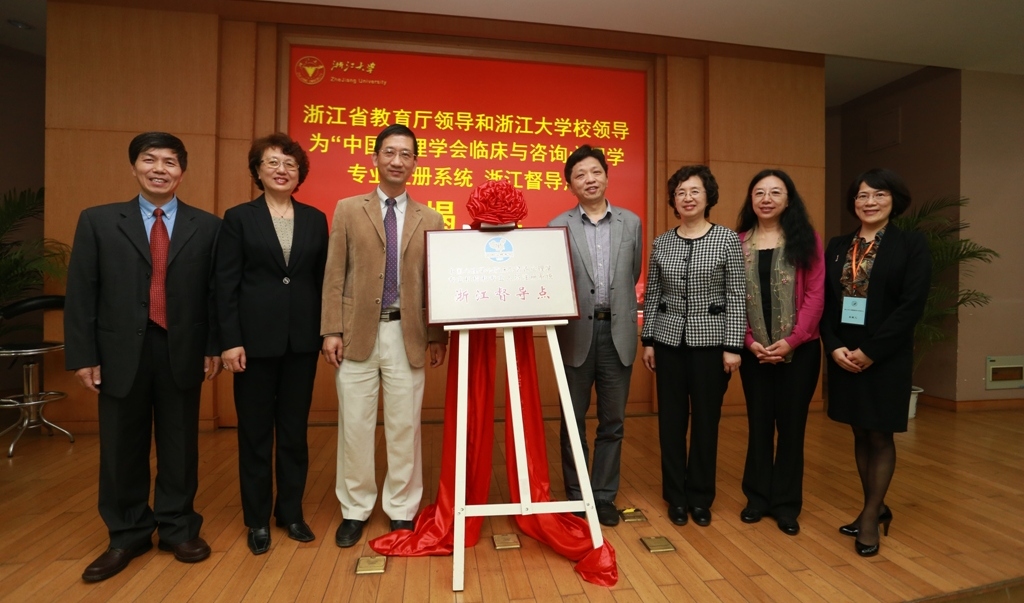 2013年10月21日上午,“中国心理学会临床与咨询心理学专业注册系统”浙江督导点揭牌仪式在浙江大学紫金港校区国际会议中心138隆重举行。中国心理学会临床与咨询心理学专业注册系统负责人钱铭怡、中国心理学会临床与咨询心理学专业机构与专业人员注册工作组委员贾晓明、浙江督导点联络人赵梅、浙江省教育厅宣教处处长薛晓飞、浙江大学党委副书记严建华、中国心理学会副理事长、浙江大学心理与行为科学系主任沈模卫出席仪式。参加本次揭牌仪式的人员还有:浙江大学党委宣传部、党委学工部、党委研工部、人事处、本科生院、计财处、校工会、校团委、发展联络办、校医院等单位负责人,以及浙江省多所高校、医院、司法机构和社会心理咨询机构的老师和专业人员等200多人。会议由浙江大学学生心理健康教育指导委员会副主任马建青主持。