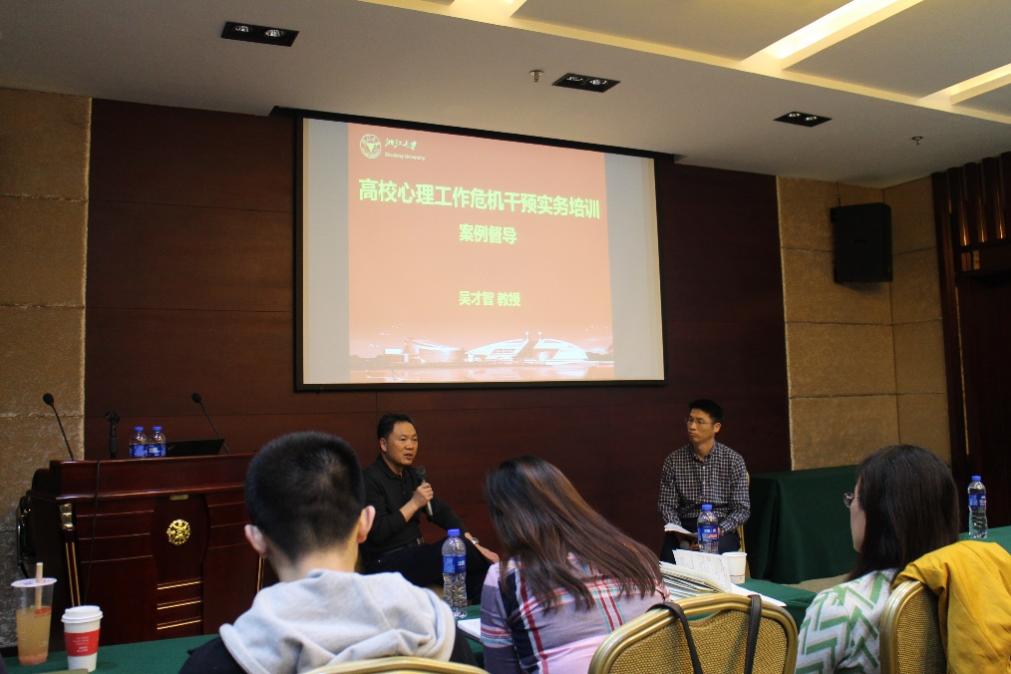 随后,吴才智教授正式开始授课。吴教授精心设置了结构化的培训内容,以“危机预防”、“危机干预”和“危机后的干预”三个部分作为主线,在两天的讲座中依次展开,耐心讲解。