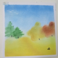 一纸一笔一天地,在绘画过程中将粉彩棒上的粉末刮下来,落于纸上,用手指去涂抹和晕染,感受指尖的触动,唤醒内在的情绪和体验,带着这涌动而出的感受去创造属于你自己独特的绘画作品,这副作品或许承载着你丰富的情绪,也或许承载着你的内心图景,在未来的某一天,也或许能让你不自觉地想起这幅图画带给你的一份感动。