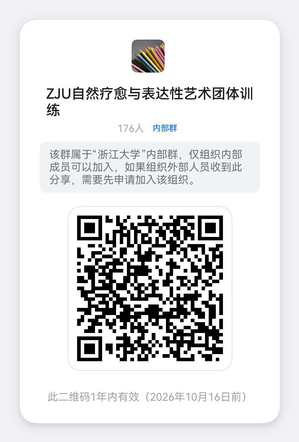 欢迎同学们扫描下方“ZJU表达性艺术团体训练”钉钉群二维码,及时关注后续表达性艺术团体训练项目信息。